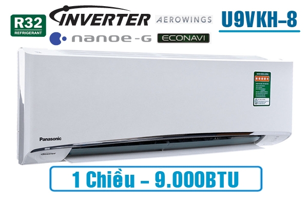Điều hòa Panasonic CU/CS-U9VKH-8, 1 chiều, 9000 BTU, Inverter sở hữu thiết kế treo tường với màu sắc trang nhã, đem đến cho không gian phòng của bạn sự tiện nghi cùng hiện đại. Sản phẩm phù hợp lắp đặt cho mọi không gian từ gia đình đến văn phòng, lớp học, cửa hàng,...