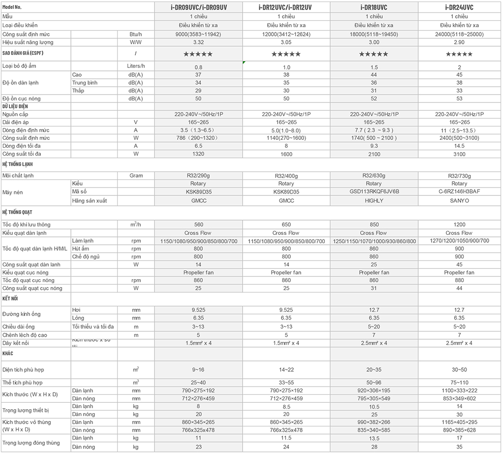 | Bảo hành | : Máy nén 05 năm, linh kiện 03 năm |